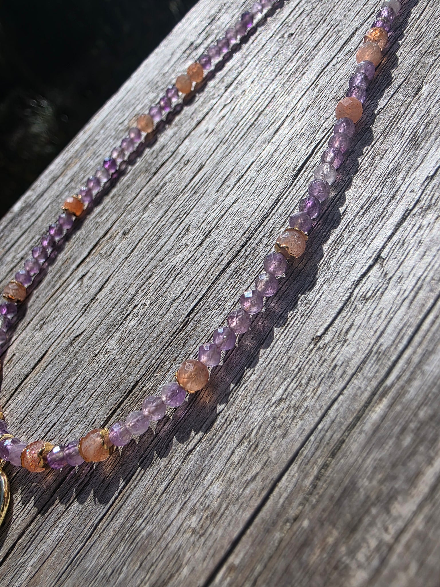 3–4mm faceted natural amethyst and sunstone