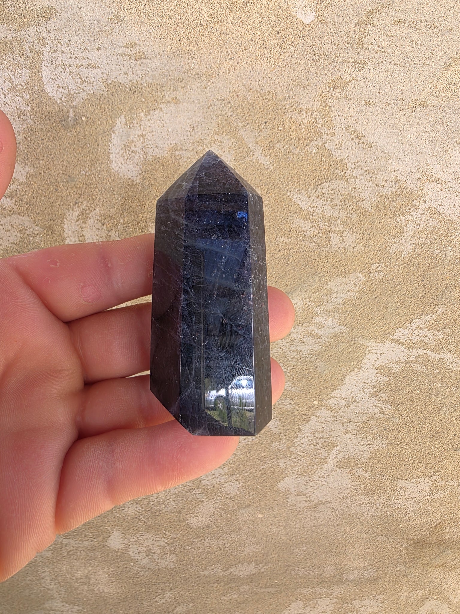 This listing is for 1 Iolite Tower. This was devilishly hard to photograph, it is so incredible in person!