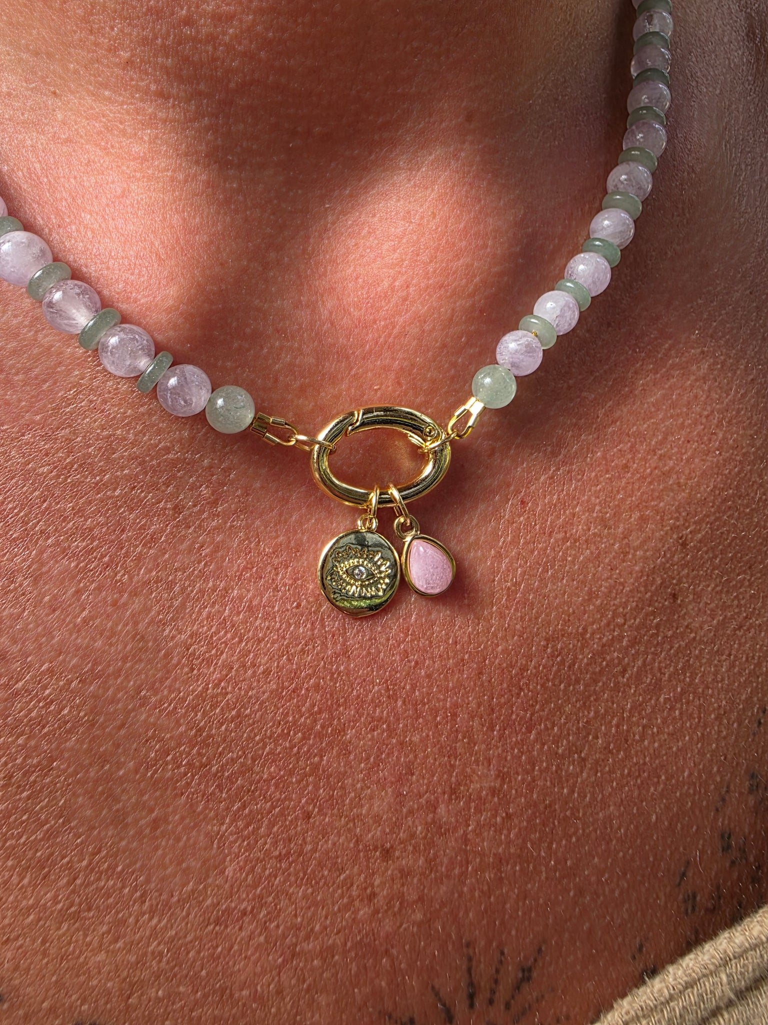Heart Harmony Necklace – Lavender Amethyst, Green Aventurine & Protective Charms, 18k Gold PVD plated findings.
